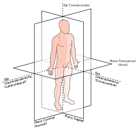Plano sagital: plano vertical que divide al cuerpo en derecha e izquierda