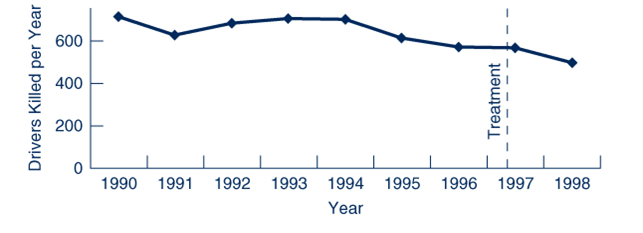 Some external or "historical" event affects most members of the treatment group at the same time as the treatment