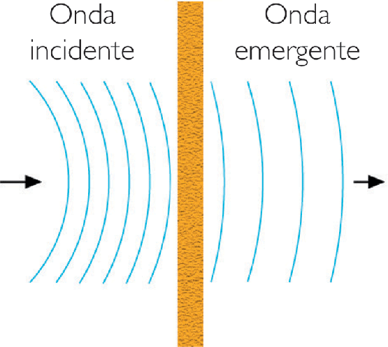 por medios contiguos o por objetos interpuestos en el camino de avance de la onda