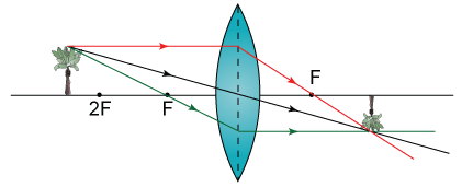 If the object is further from the lens than the principal focus it forms an - inverted - real image