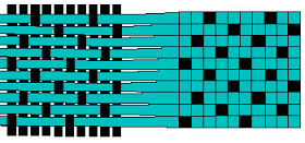 interlacing 2 different yarns. Weft to the left & Warp up & down