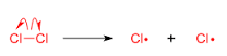 Homolytic Fission is equal splitting of the electrons due to 2 identical elements ( EG: Cl-Cl )