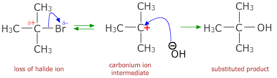 This reaction causes Haloalkanes to turn into a Water molecule, a Halogen Ion and an Alkene