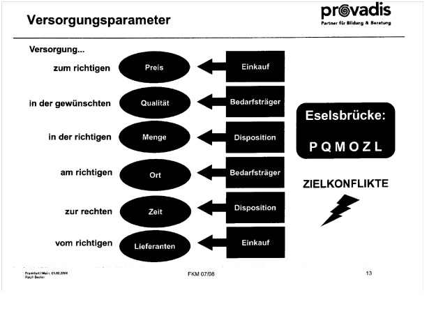 gewünschten Qualität, in der richtigen Menge, am richtigen Ort, zur rechten Zeit und vom richtigen