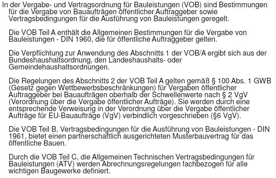 VOB = Vergabe- und Vertragsordnung für Bauleistungen