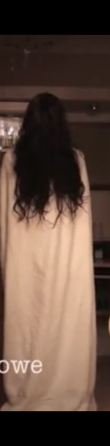 long black hair cvering her face and looks very scary, which was what we were aiming for and representing the spirit as scary was our main goal