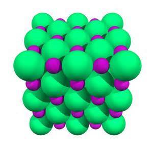 Sodium chloride -> one sodium (Na^+) ion for every chlorine (Cl^-) ion -> NaCl