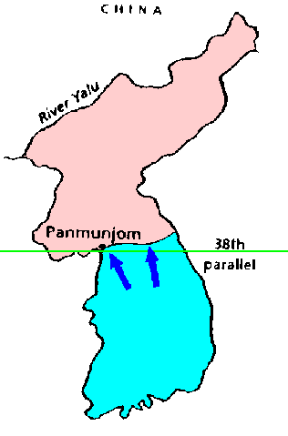 South gained a little territory above the 38th on the eastern side of the peninsula