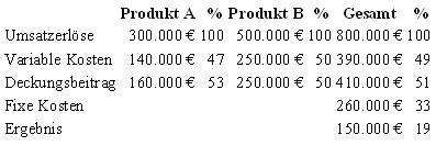 Deckungsbeitragsrechnung (Fixkostendeckungsrechnung)