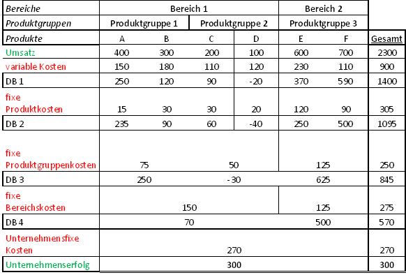 Die mehrstufige versucht den Fixkostenblock weiter aufzuspalten und