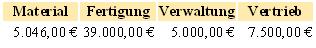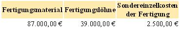 Als Einzelkosten sind gegeben