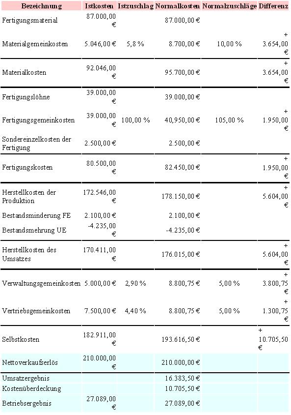 Als Gemeinkostenzuschlagsätze auf Normalkostenbasis wurden angegeben