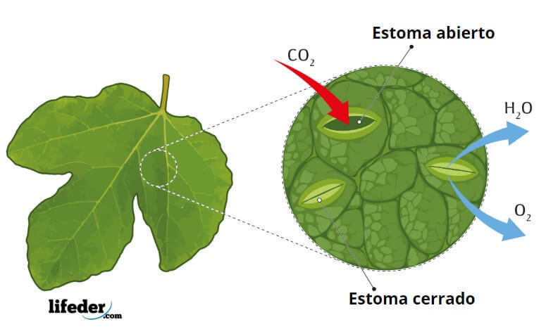El anhidrido carbonico entra en la hoja y se combina con el agua para producir hidratos de carbono