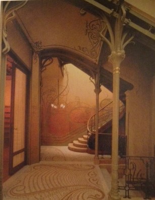 curvilinear forms, whiplash curves, stylized plants/flowers