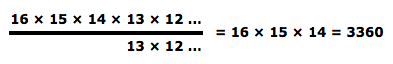 tiene 15 posibilidades, después 14, 13, etc. Y el total de permutaciones sería: