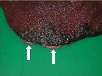 Lungs contain fine 1 -2mm black foci in subpleural region