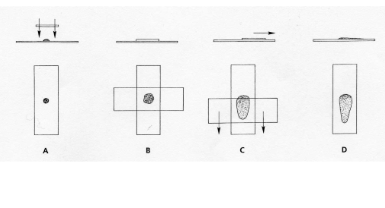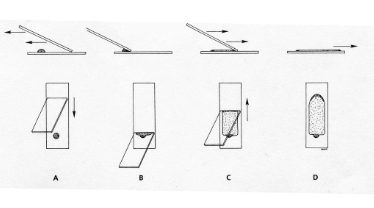Spreader (top) slide can be at right angles or parallel to the sample slide