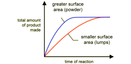 Smaller solid particles ( or more surface area) means other particles can get to it more