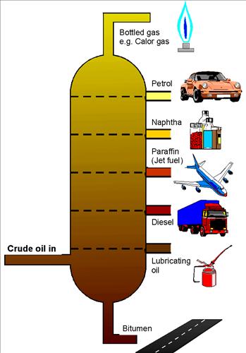 You end up with the crude oil mixture separated out into groups of hydrocarbons