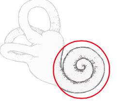 Cochlea: a boney, spiral-shaped cavity coiled 2 ½ times; filled with fluid and divided into three sections;