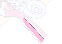 and outside the tympanic membrance and allows the drainage of normal and diseased middle ear