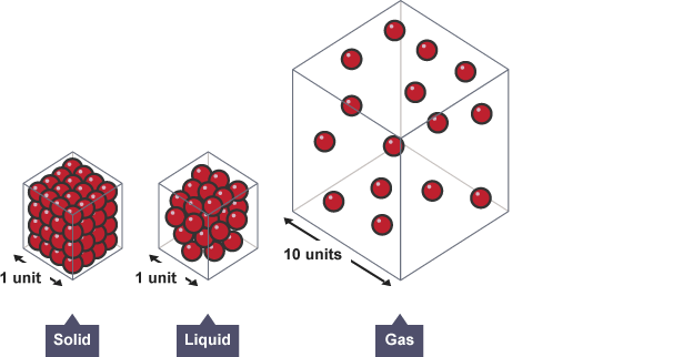 significantly. This means that the gas takes up a lot more space than the liquid, so its