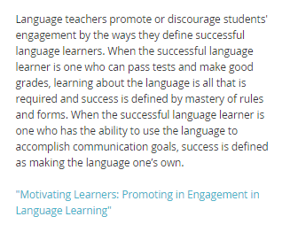 There are different styles of learning such as retention, understanding, active use, surface/deep learning. Computer-based instruction units (integrated learning systems) operate this way. There has been emphasis on active use learning--being able to put principles into practice. Like learning a language. One must be able to actively use the language, being anti-social with your language does not help anyway. Teachers are usually talking about "productive, active-use, deep learning"--being able to draw understanding off what was learned and use it effectively in real world or simulated situations.