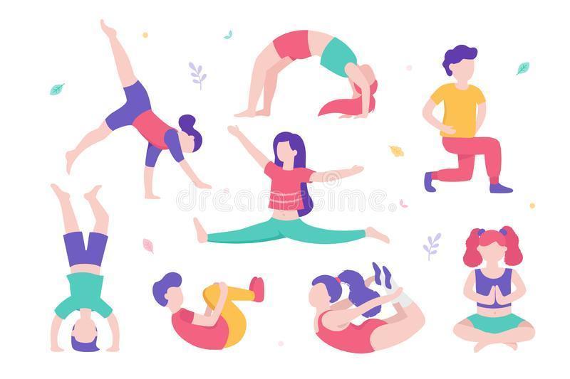 Niños Que Hacen El Sistema De Ejercicios Físicos Diversas Actitudes Y Personajes Dibujos Animados Lindos En Fondo Blanco 130381355 (image/jpeg)