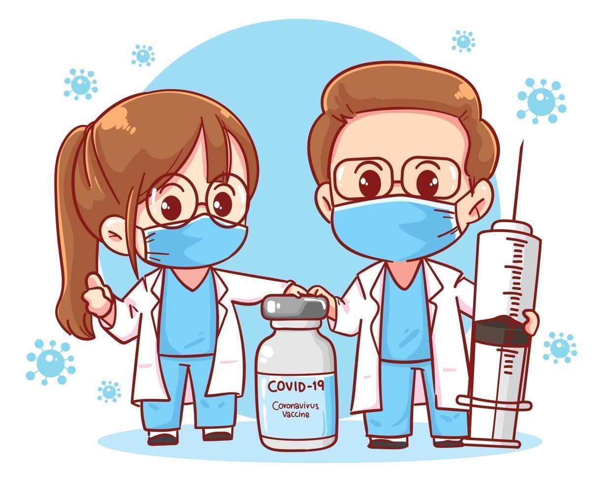 Doctor And Coronavirus Vaccine Injection Syringe Cartoon Art Illustration Free Vector (image/jpeg)