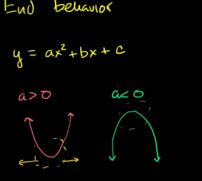 End Behavior: Ends of a parabola affected by "a's"value compared to '0'