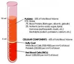 Blood is made up of four parts or components:plasma,red blood cells,white blood cells ands platelets.
