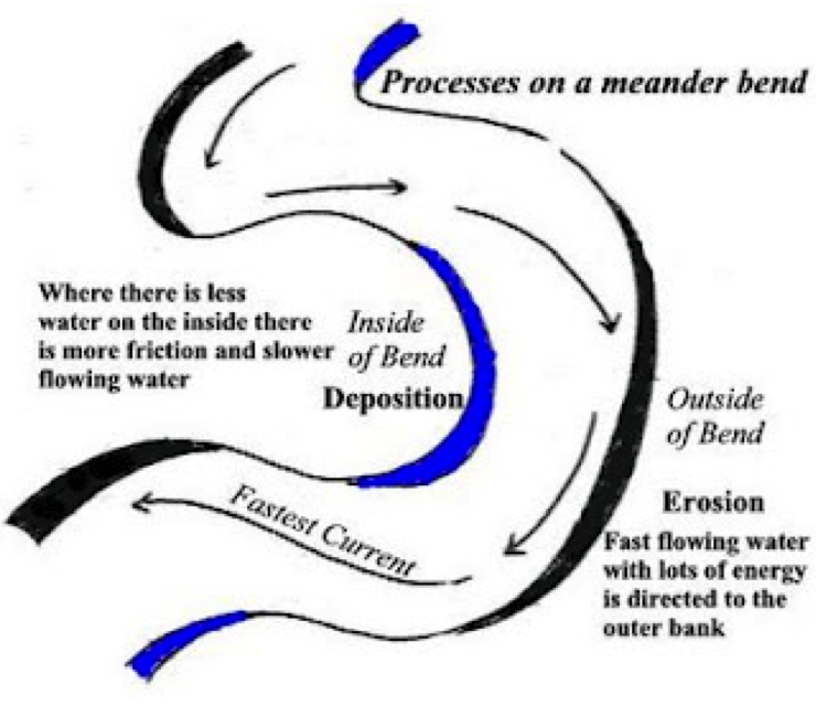 deposits have this gentle slip off slope,, inner bank = convex bank
