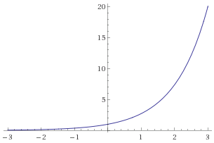 e, asymptote y=0, crosses (0,1)