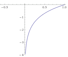 ln, asymptote x=0, crosses (1,0)