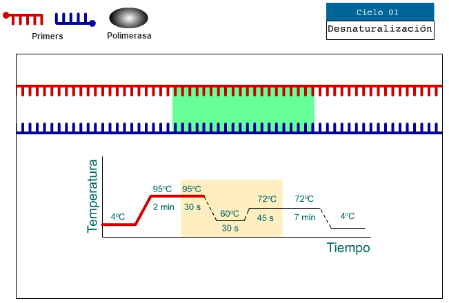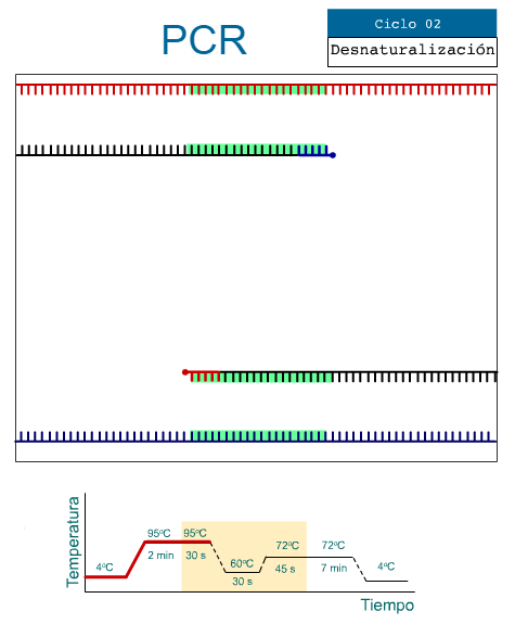Se mantiene la temperatura durante 30 seg mas y sucede la Desnaturalizacion (ciclo 01)
