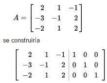 la matriz dada, digamos A con una matriz identidad, simplemente escribiendo las filas de la identidad a