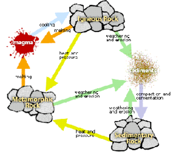From igneous or sedimentary rock as a result of high temperature or pressure (4)
