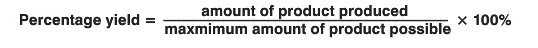 The percentage yield of a chemical reaction tells us how much product is made compared with the maximum amount that could be made (100%)