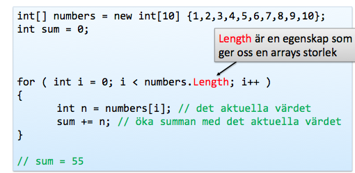 Storleken bestäms när vi skapar arrayen och kan inte förändras