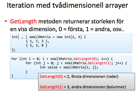 En ny tvådimensionell array instansieras med två rader och sex kolumner