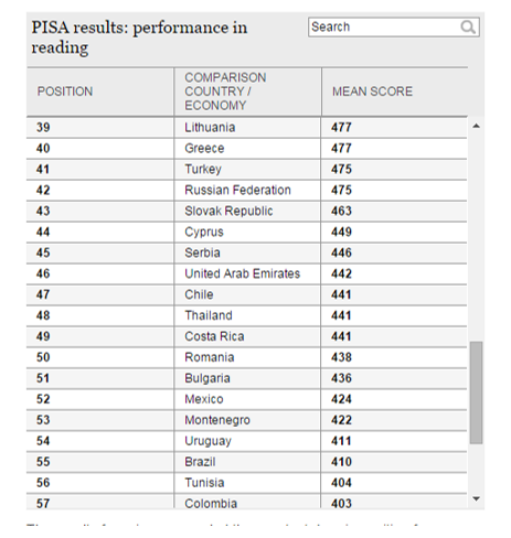 Performance in reading