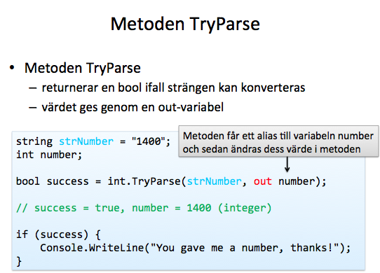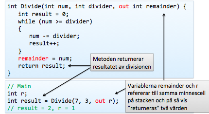 Måste deklareras och anropas med nyckelordet ref.