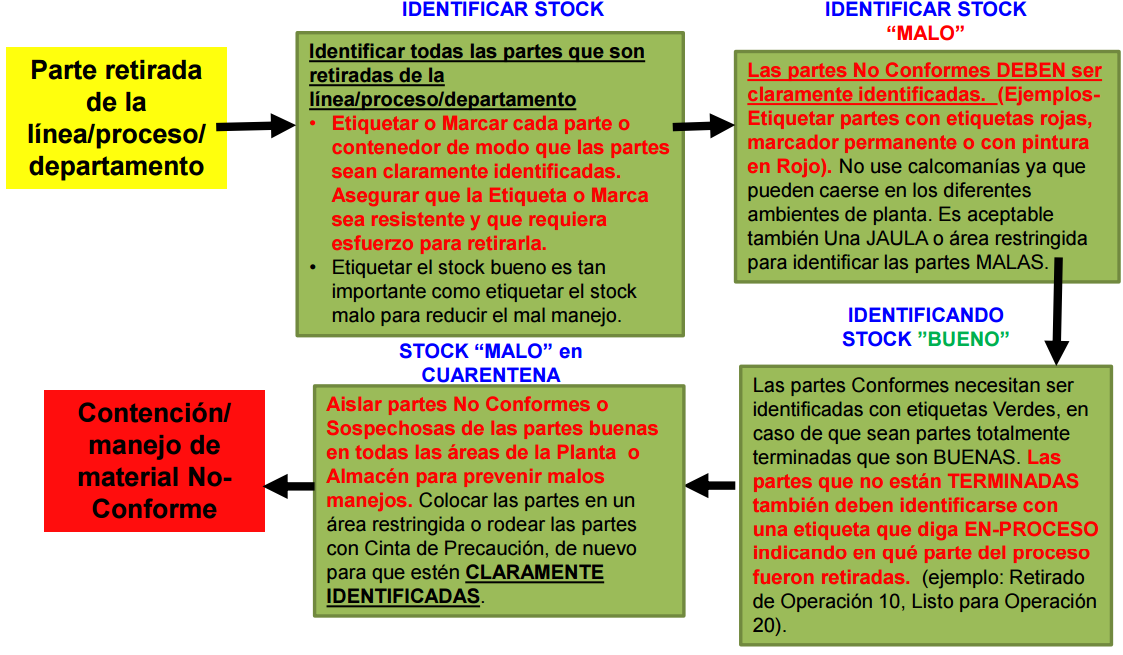Material No conforme: 1 COMUNICAR, 2 IDENTIFICACIÓN DE STOCK, 3 CONTENCIÓN ROBUSTA, 4