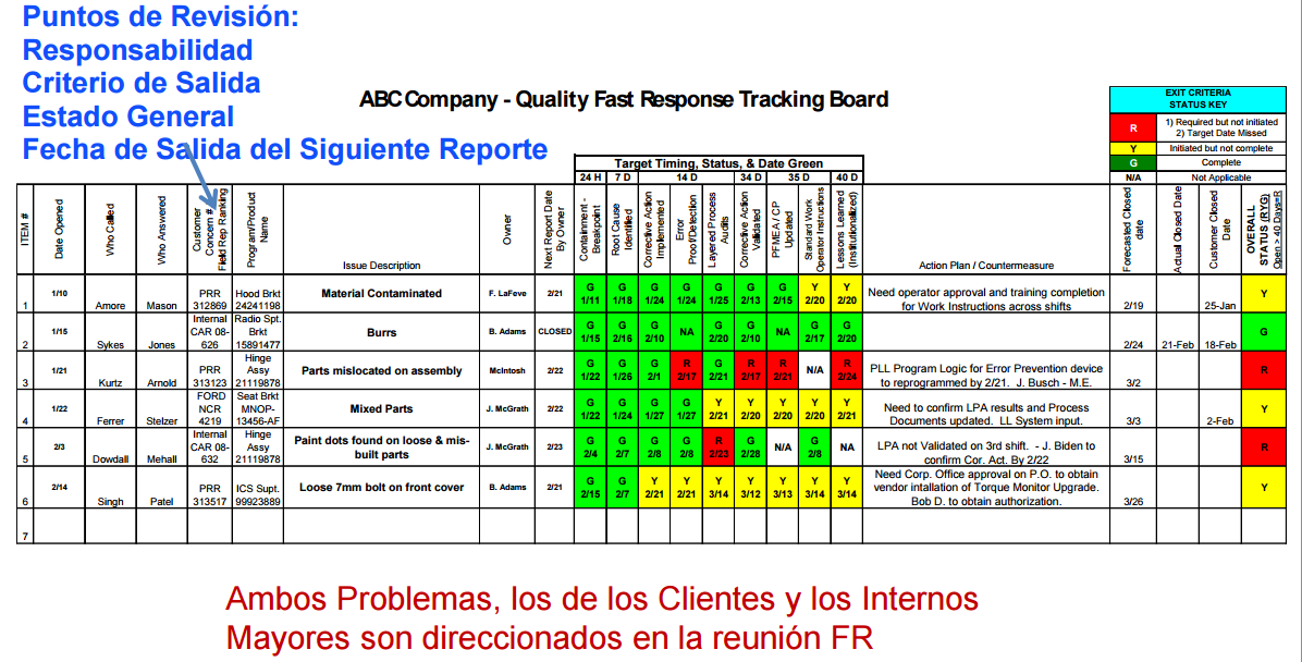 contención para prevenir mayor flujo de defectos Iniciar la solución del problema
