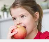 SHE IS EATING AN APPLE