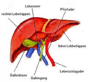 Ausscheidung von Stoffwechselprodukten, Medikamenten und Giftstoffen. Nährstoffe, die aus dem Darm ins Blut aufgenommen werden, gelangen über die Pfortader (Vena portae) zur Leber und werden dann von dieser je nach Bedarf ans Blut abgegeben oder aus dem Blut entfernt.