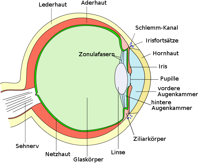 Das Auge (lat. oculus, griech. ὤψ, ops) ist ein Sinnesorgan zur Wahrnehmung von Lichtreizen. Es ist Teil des visuellen Systems und ermöglicht Tieren das Sehen. Die Aufnahme der Reize geschieht mit Hilfe von Fotorezeptoren, lichtempfindlichen Nervenzellen, deren Erregungszustand durch die unterschiedlichen Wellenlängen elektromagnetischer Strahlung aus dem sichtbaren Spektrum verändert wird. Bei Wirbeltieren gelangen diese Nervenimpulse über die Sehnervenbahnen zum Sehzentrum des Gehirns, wo sie schließlich zu einer optischen Wahrnehmung verarbeitet werden.