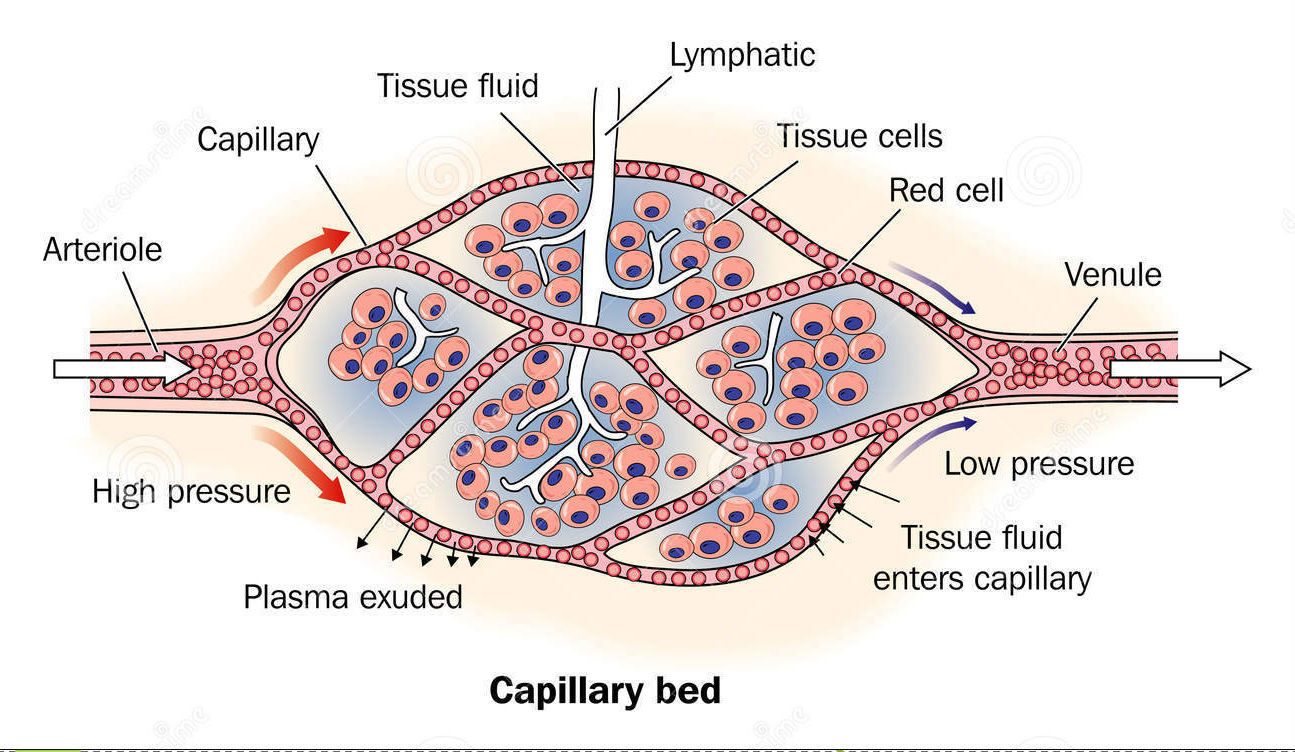 when it enters the capillaries, the blood pressure is around 35mm Hg