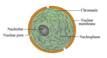 Has a nuclear envelope (double lipid bilyer) which contains nuclear pores allowing certain substances to pass
