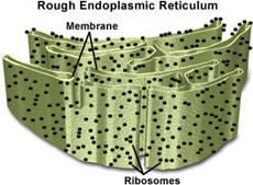 Involved in the providing a surface for ribosomes to attach and produce proteins, then the transport of proteins produced